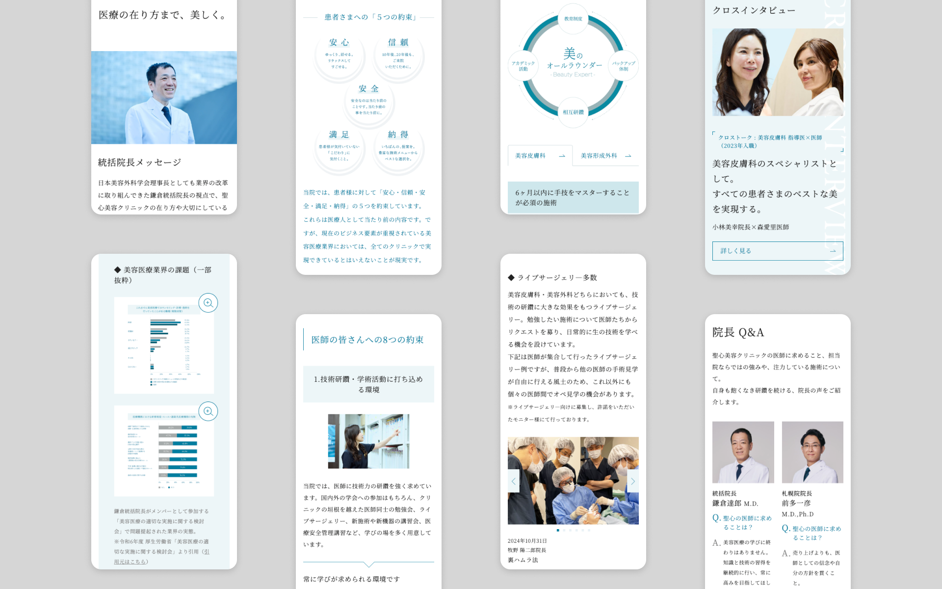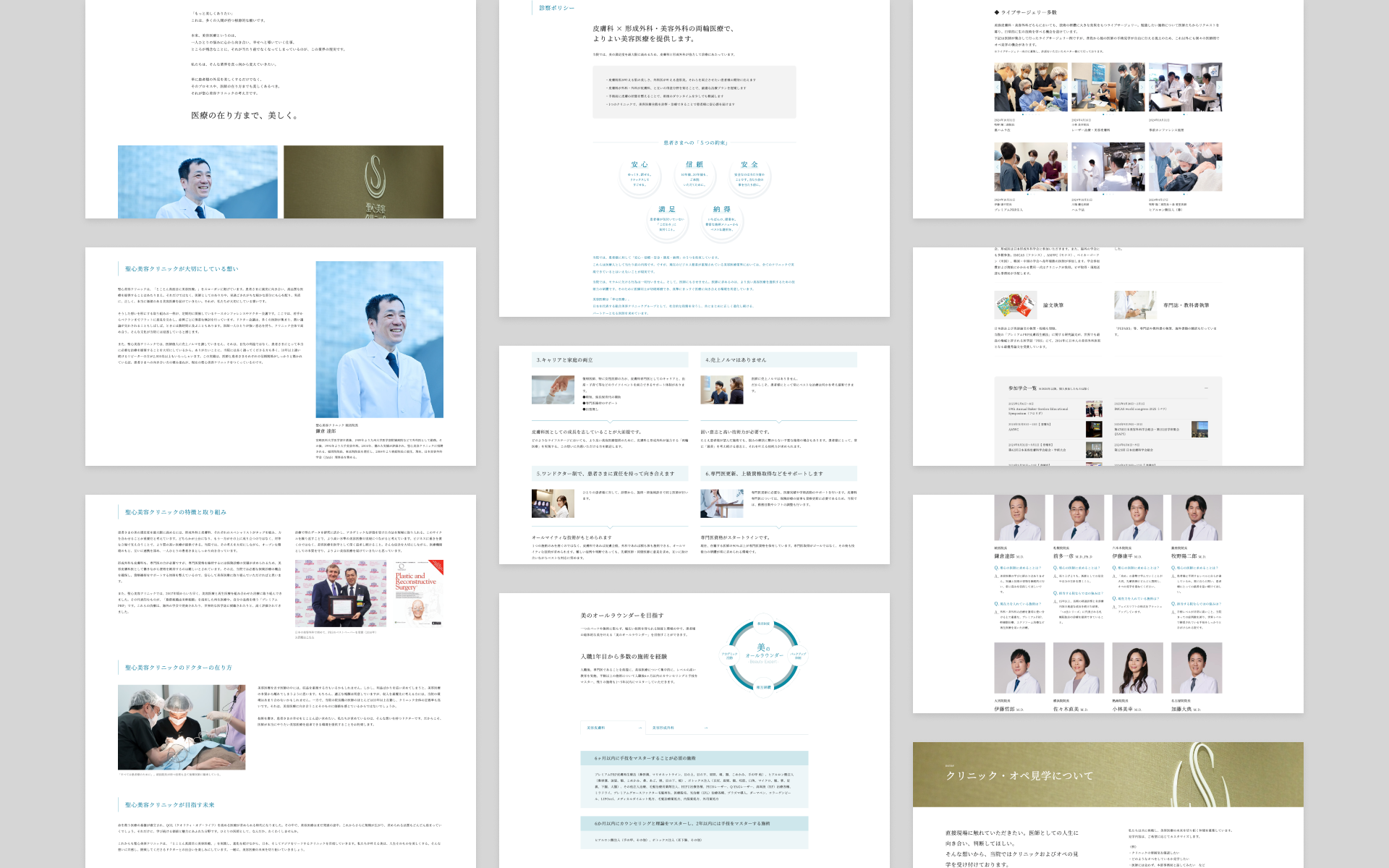 「プロセスや在り方までも美しくあるべき」という聖心美容クリニックのスタンスを、デザインと文章の両面で丁寧に表現しています。